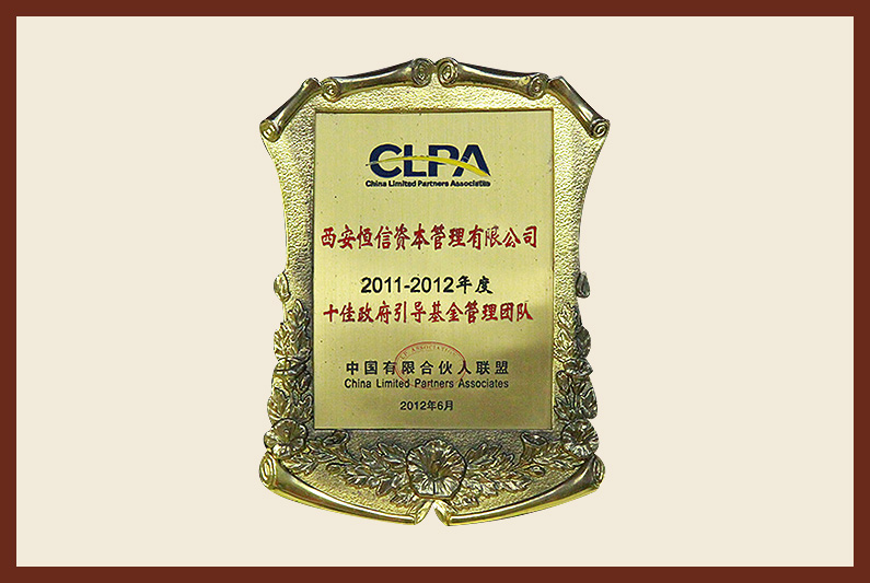 西安恒信資本管理有限公司2011-2012年度十佳政府引導基金管理團隊